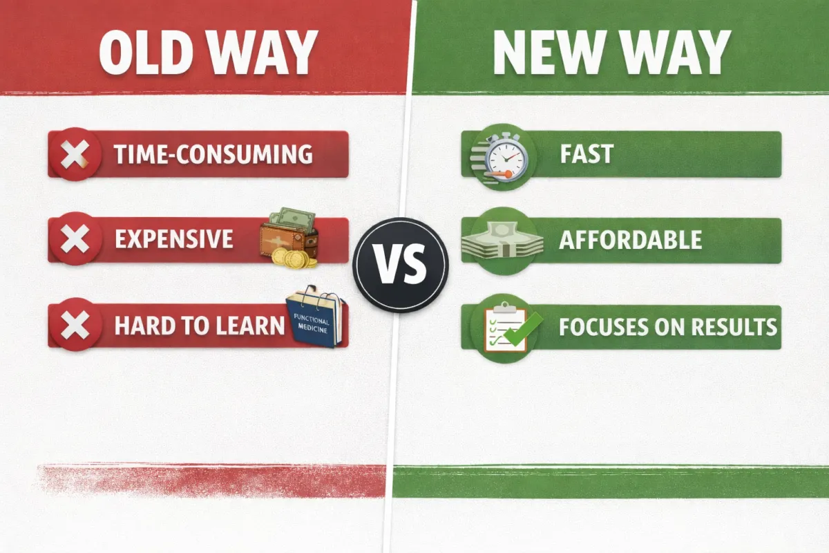 Affordable - We're not wasting thousands on lab fees, we're spending a couple hundreds bucks on TREATMENT labs (i.e. foods, nutrients, toxins, inflammation, cellular health etc.)...labs that will move the needle in providing a TREATMENT plan.